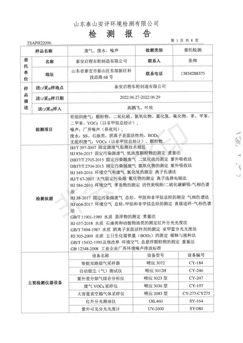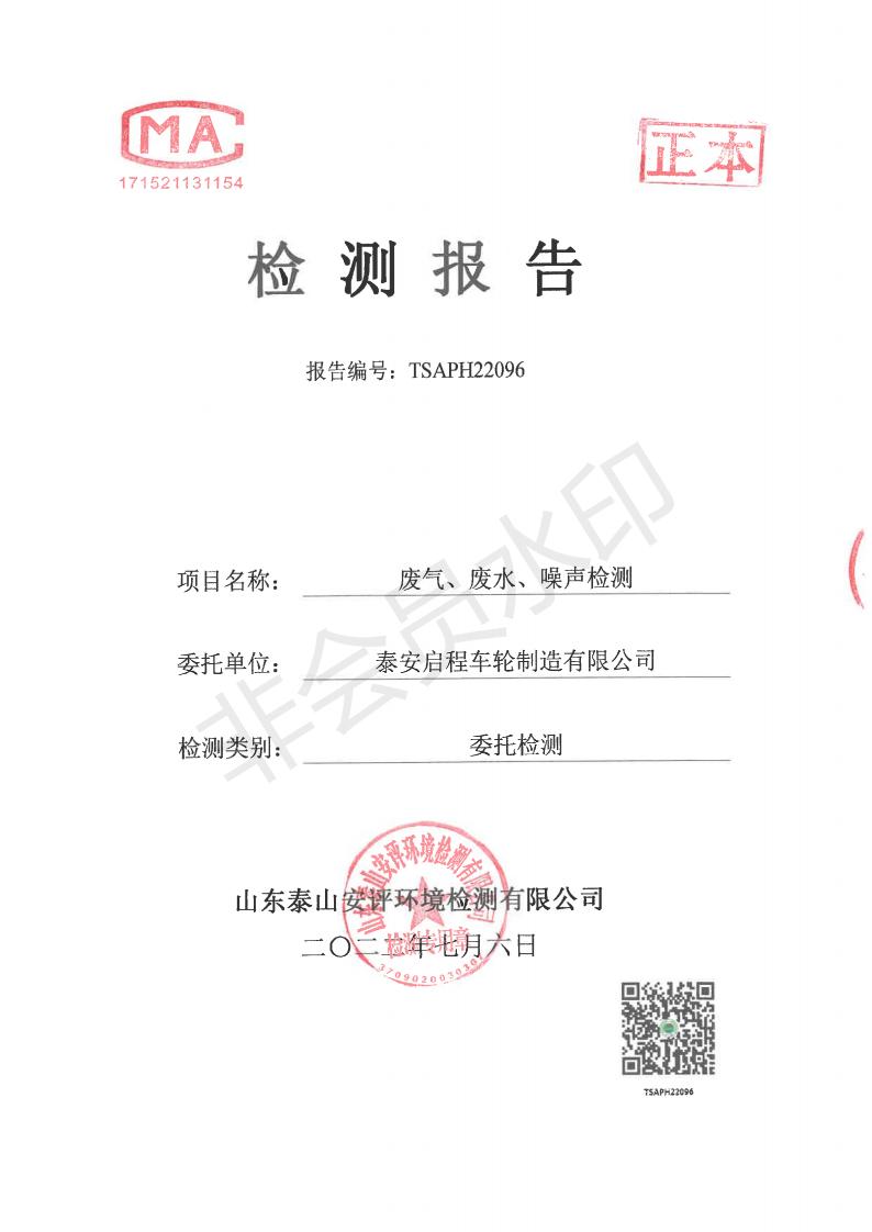 泰安启程车轮制造有限公司2022年6月份环境污染物排放检测报告